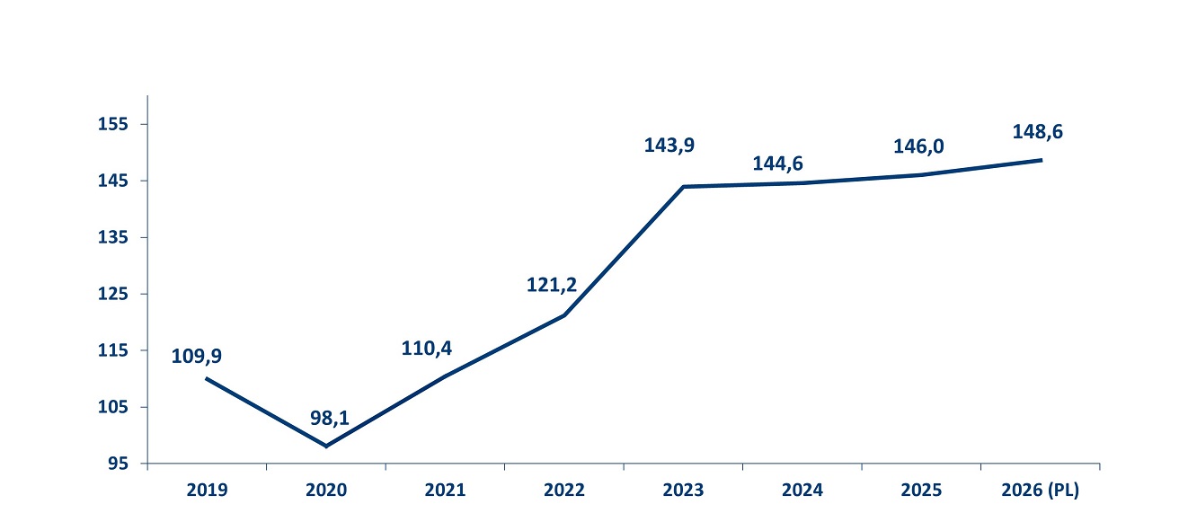 Sales development in million euros